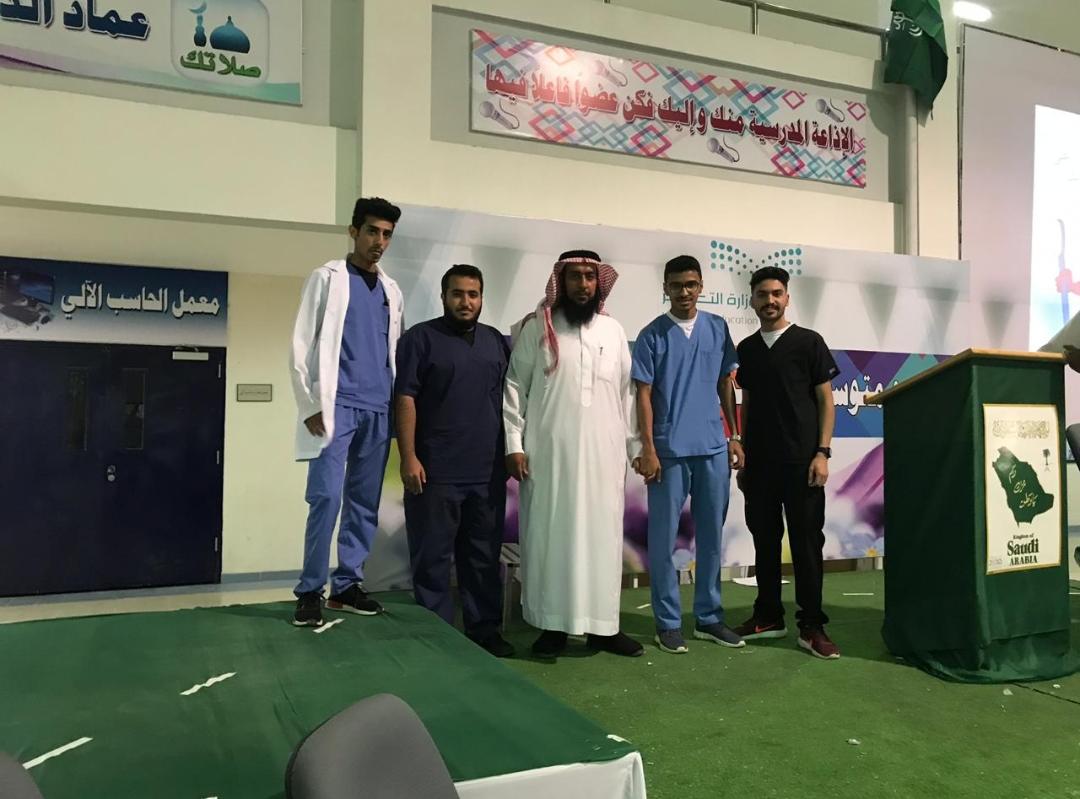 شاركت كلية طب الأسنان ممثلة في وحدة الأنشطة الطلابية ونادي إشراقة لطب الأسنان بحملة توعوية بالتعاون مع كلية إدارة الأعمال في حوطة بني تميم بعنوان (ابتسامة مشرقة) والتي أقيمت يوم الثلاثاء 14/2/1440هـ . حيث استقبل وفد كلية طب الأسنان عميد كلية إدارة الأعمال المكلف د. إبراهيم بن محمد الداود ومنسق الأنشطة الطلابية أ.فهد العبودي حيث شكر العميد وفد كلية طب الأسنان بالخرج على تعاونهم ومشاركتهم في تنظيم فعالية (ابتسامة مشرقة). حيث تضمّنت الفعالية على أكثر من محور، ابتدأت بالعرض التقديمي لطلاب كلية إدارة الأعمال، قدّمها مشرف الأنشطة الطلابية د.فيصل الحيان، ومشاركة الطلاب زياد الغملاس و تميم العثمان و فواز الهاجري وتمحور العرض حول أهمية الوقاية من التسوس وطريقة تفريش الأسنان الصحيحة. و تضمنت الحملة معرضا مصاحبا وعيادة متنقلة قدّم من خلالها طلاب كلية طب الأسنان برنامجا توعويا للزوار و وُزّعَت المنشورات لهم. وانتهت الفعالية بزيارة متوسطة ابن تيمية ، وابتدائية عبدالله بن مسعود، وقدّم الطلاب برنامجا توعويا لطلاب المدارس عن الأسنان وطرق حمايتها من التسوس. و في نهاية اللقاء شكرَ ممثل الوفد د.فيصل بن حيان عميدَ الكلية و أ.فهد العبودي على حسن الاستقبال والدعوة والتنظيم ، الذي كان سببا في إنجاح البرنامج.