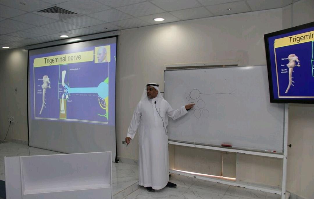 أقامت كلية طب الأسنان ممثلة بقسم جراحة الوجه والفكين وعلوم التشخيص ، صباح يوم الأحد الموافق ١٧ /٣ /١٤٤٠ ه ( ٢٥/١١/٢٠١٨ م) محاضرة عملية بعنوان: (Local Anesthesia: from Anatomy to Special Considerations)قدمها سعادة أ.د. هشام بن صالح المعلّم ، عميد كلية طب الأسنان بجامعة دار العلوم حيث شارك في هذة المحاضرة مختلف طلاب كلية طب الأسنان من مختلف السنوات الدراسية.