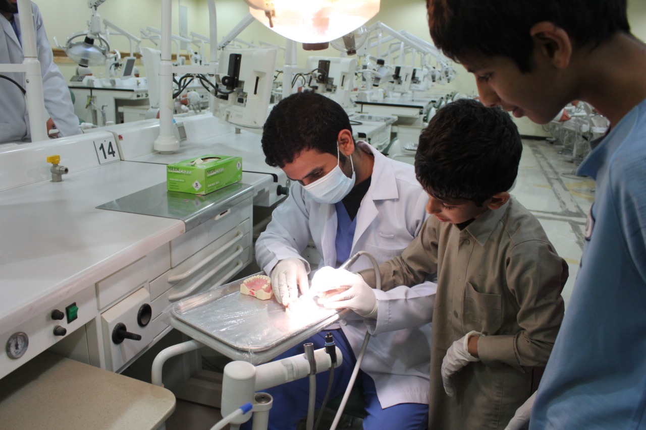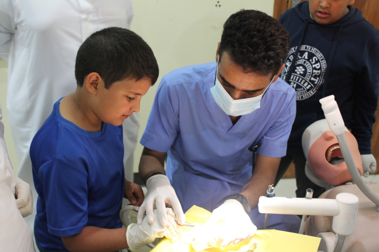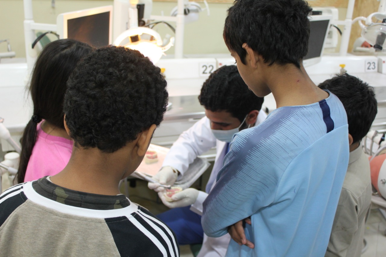 استقبلت كلية طب الأسنان ممثلة في وحدة تدريب أطباء الامتياز وبالمشاركة مع نادي إشراقة الطلابي الجمعية الخيرية لرعاية الأيتام (إنسان)وقد كان في استقبالهم أطباء الإمتياز بالكلية حيث تم إجراء الكشف الطبي عليهم وأخذ جولة داخل الكلية بمشاركة أعضاء نادي إشراقة وتوزيع الهدايا لهم وذلك يوم الخميس الموافق 1-4-1441هـ.