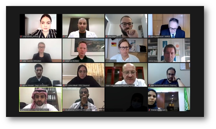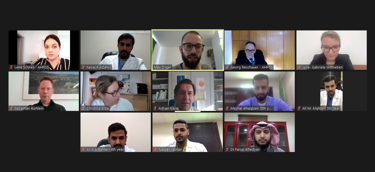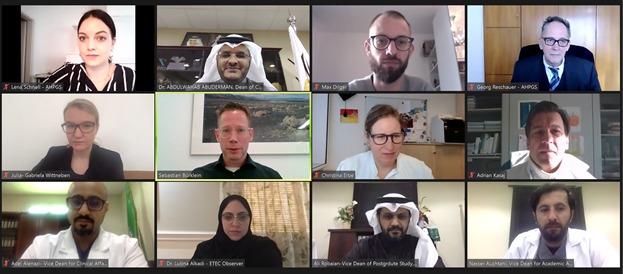 في سياق إجراءات الاعتماد البرامجي الدولي عقد فريق هيئة اعتماد العلوم الصحية و الاجتماعية الألماني AHPGS الزيارة الافتراضية للكلية ،