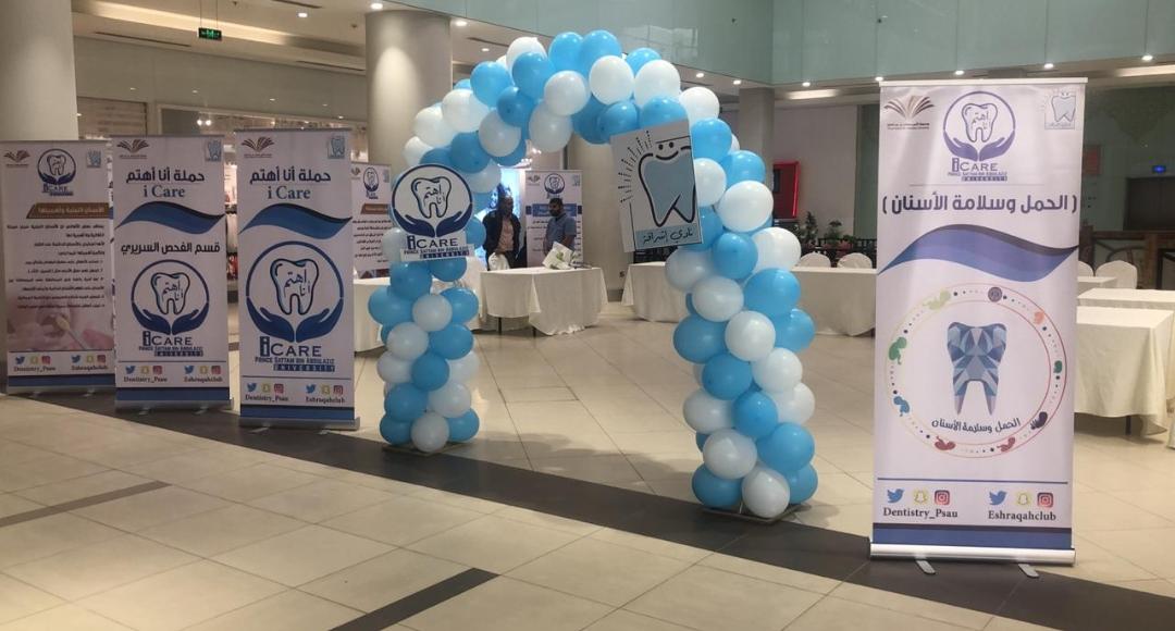 أقام نادي إشراقة لطب الأسنان التابع لعمادة شؤون الطلاب يوم الجمعة الموافق 12 جمادى الأول 1440هـ حملة انا اهتم التطوعية بجامعة الأمير سطام بن عبدالعزيز في أول انطلاقاتها بمجمع الواحة مول بمدينة السيح في منطقة الخرج.حيث تم تخصيص الجزء الأول من الحملة للعناية والتوعية بصحة المرأة الحامل وسبل الوقاية من الأمراض والتغييرات المصاحبة خلال فترة الحمل وأيضا ً توعية المرأة الحامل عن اهم الأدوية المستخدمة وما يجب تجنبه خلال هذه الفترة المهمة.حيث شارك 40 طالب من مختلف السنوات الدراسية في الحملة تحت إشراف نخبة من أعضاء هيئة التدريس بالكلية ، وشهدت الحملة إقبالاً كبيراً من مختلف زوار المجمع.