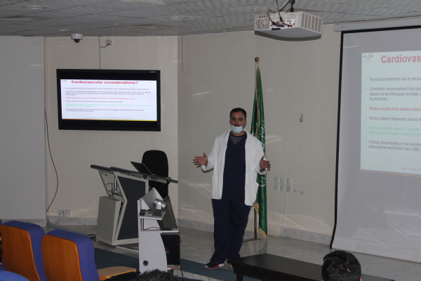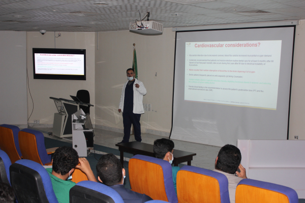 نظمت وكالة الكلية للشؤون الاكاديمية ووحدة تدريب أطباء الامتياز محاضرة بعنوان : (Comprehensive Case Review I) قدمها سعادة الدكتور :عبدالعزيز بن محمد الصقر في قاعة المؤتمرات بكلية طب الاسنان