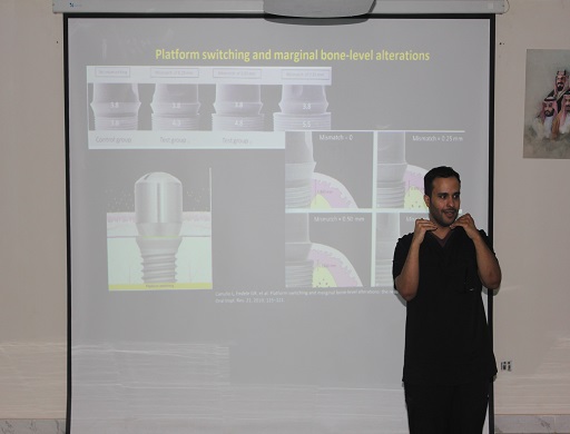 نظمت وحدة تدريب أطباء الامتياز بالتعاون مع نادي إشراقة محاضرة بعنوان: Periodontal Lecture (Case Review II)قدمها سعادة  الدكتور/ عبدالعزيز بن محمد الصقر وذلك يوم الاحد الموافق 23/ 10 /2022م بقاعة المؤتمرات بالكلية