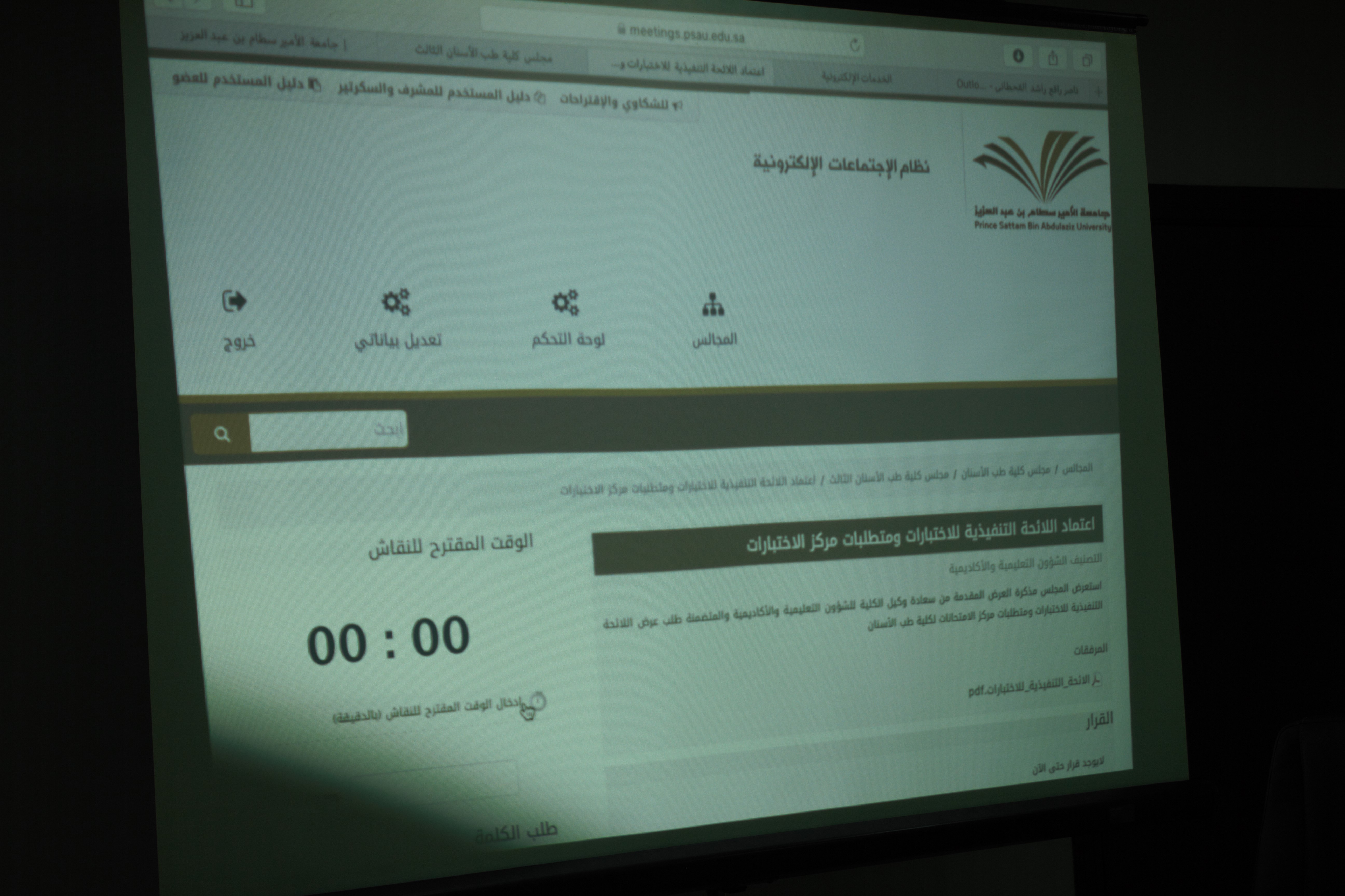 عقداليوم الأحد الموافق ١٤٤١/٣/٦هـ مجلس كلية طب الأسنان الثالث برئاسة عميد الكلية سعادة الدكتور عبدالوهاب علي أبودرمان.نوقش خلال الإجتماع عدة مواضيع أكاديمية وإدارية أتخذ بها التوصيات اللازمة.