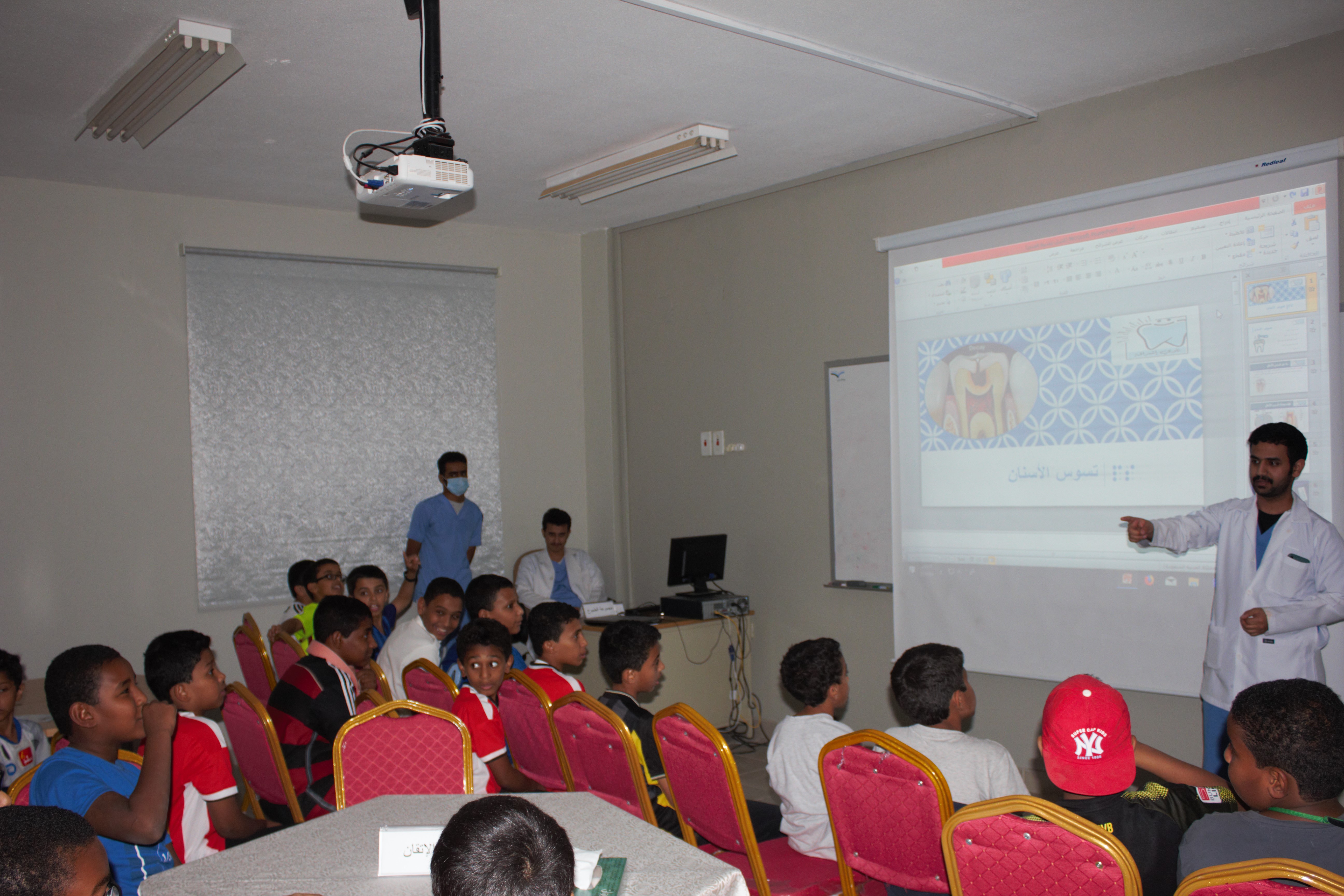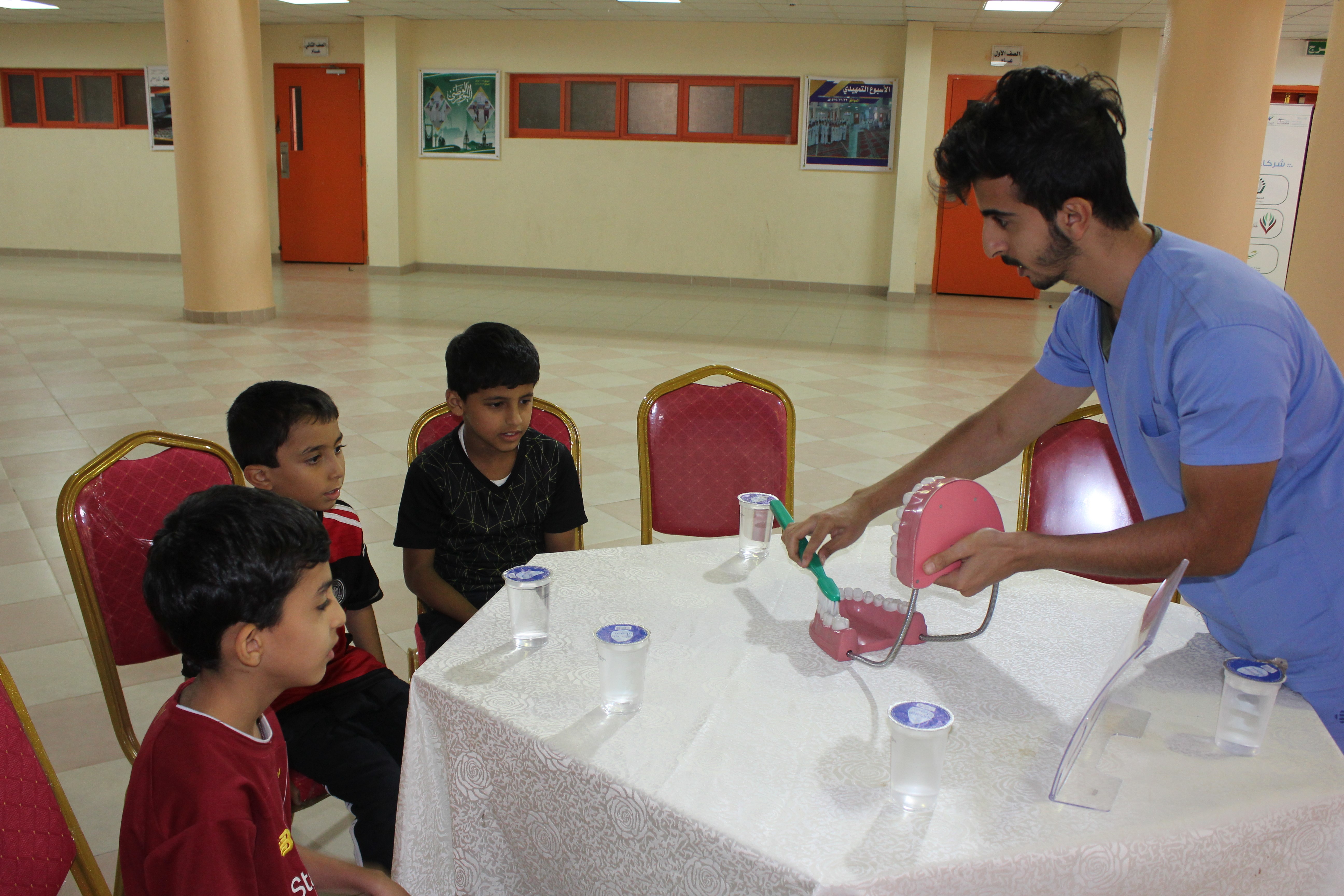 برعاية كريمة من عمادة شؤون الطلاب أقام نادي إشراقة بكلية طب الأسنان حملة توعوية تثقيفية لصحة الفم والأسنان يومي الاثنين والثلاثاء ١٤-١٥ / ٣ /١٤٤١ هجري الموافق ١١-١٢ / ١١ / ٢٠١٩ ومن منطلق الواجب الاجتماعي تجاه أبناء المجتمع عموماً فقد استهدفت الحملة نادي الحي بمدرسة ابن عباس بالدلم clubibnabbas@ من الساعة الرابعة عصراً وحتى الساعة السابعة مساءً هدفت الحملة إلى التوعية بأهمية صحة الفم والأسنان وطرق المحافظة عليها وعلى بناء مجتمع واعٍ بأهمية صحة الفم والأسنان وطرق الوقاية من التسوس، الأمر الذي سينعكس إيجاباً على المجتمع. واشتمل البرنامج التوعوي على عرض تعريفي بالحملة ومن ثم فيديو تعليمي يوضح أهمية وطرق العناية بنظافة الفم والأسنان بوسائلها المختلفة وشرح أهمية تناول الغذاء الصحي المتوازن، وأهمية الزيارة الدورية لطبيب الأسنان دورياً، كما تم الكشف المجاني لزوار النادي وإلقاء النصائح التي يجب اتباعها للحصول على أسنان سليمة وابتسامة جميلة ، حيث تم التعريف بالطريقة السليمة لتنظيف الأسنان، وأهمية استخدام المعجون المحتوي على الفلورايد. و يشكر أعضاء نادي إشراقة قائد نادي الحي بابتدائية ابن عباس الأستاذ: فهد بن عبدالله الخنين واعضاء نادي الحي على مساهمتهم في نجاح الفعالية والشراكة المجتمعية وتفعيل دور مسؤولية الطرفين بخدمة المجتمع.