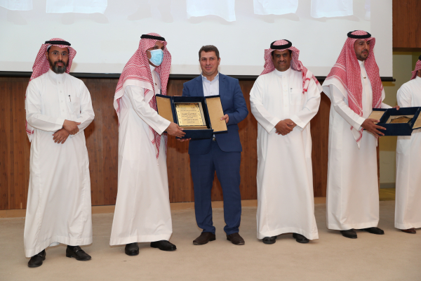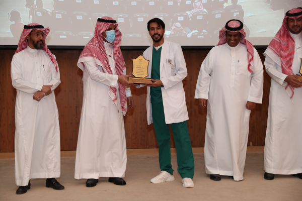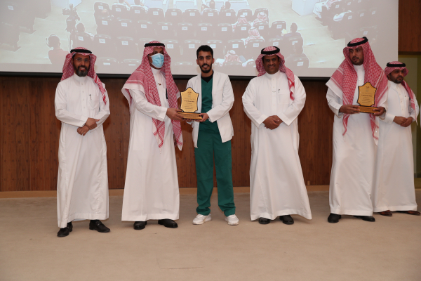 سعادة رئيس الجامعة يكرم الفائزين بالجوائز البحثية في يوم البحث العلمي التاسع لأطباء الامتياز بكلية طب الأسنان.