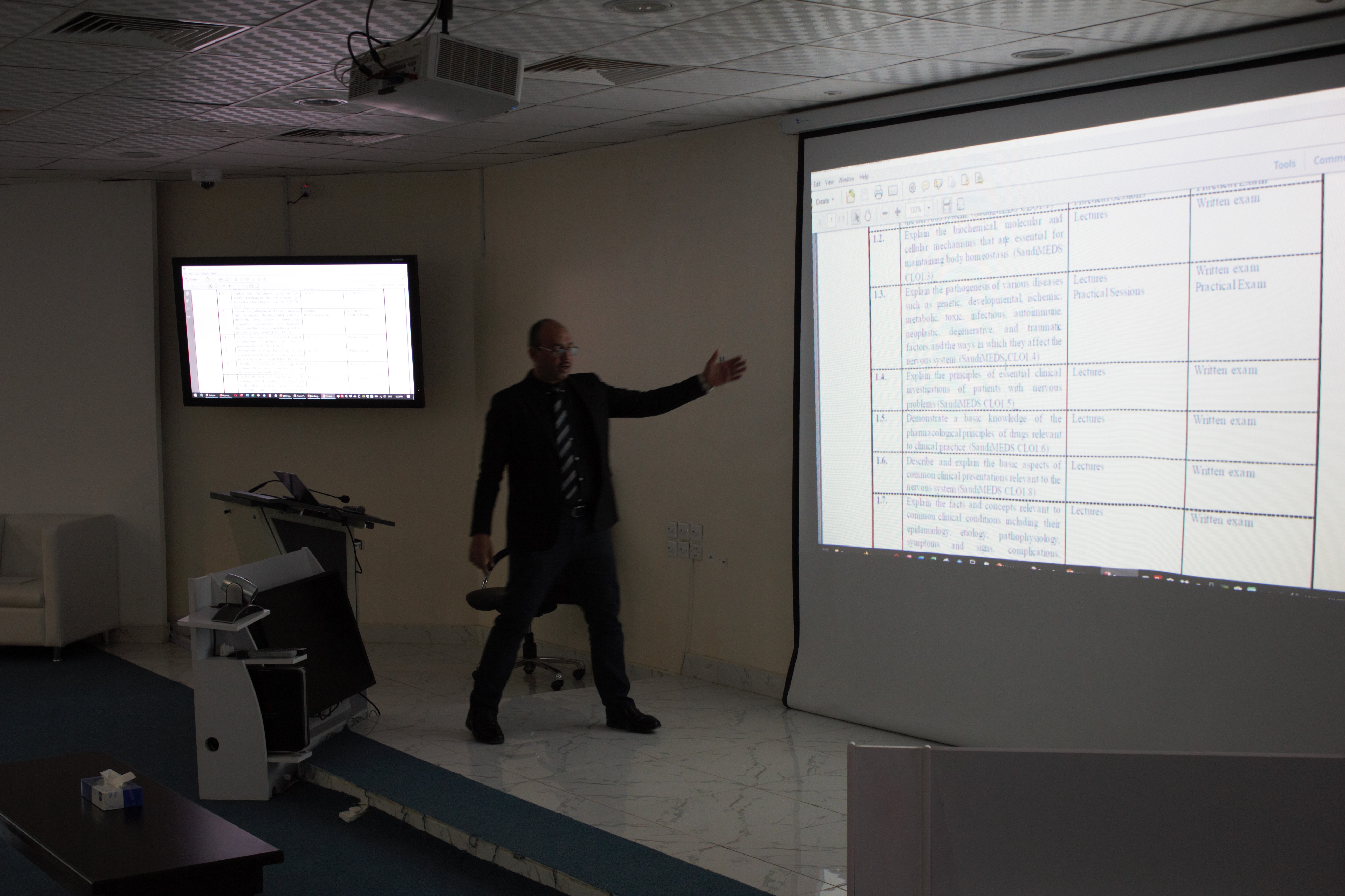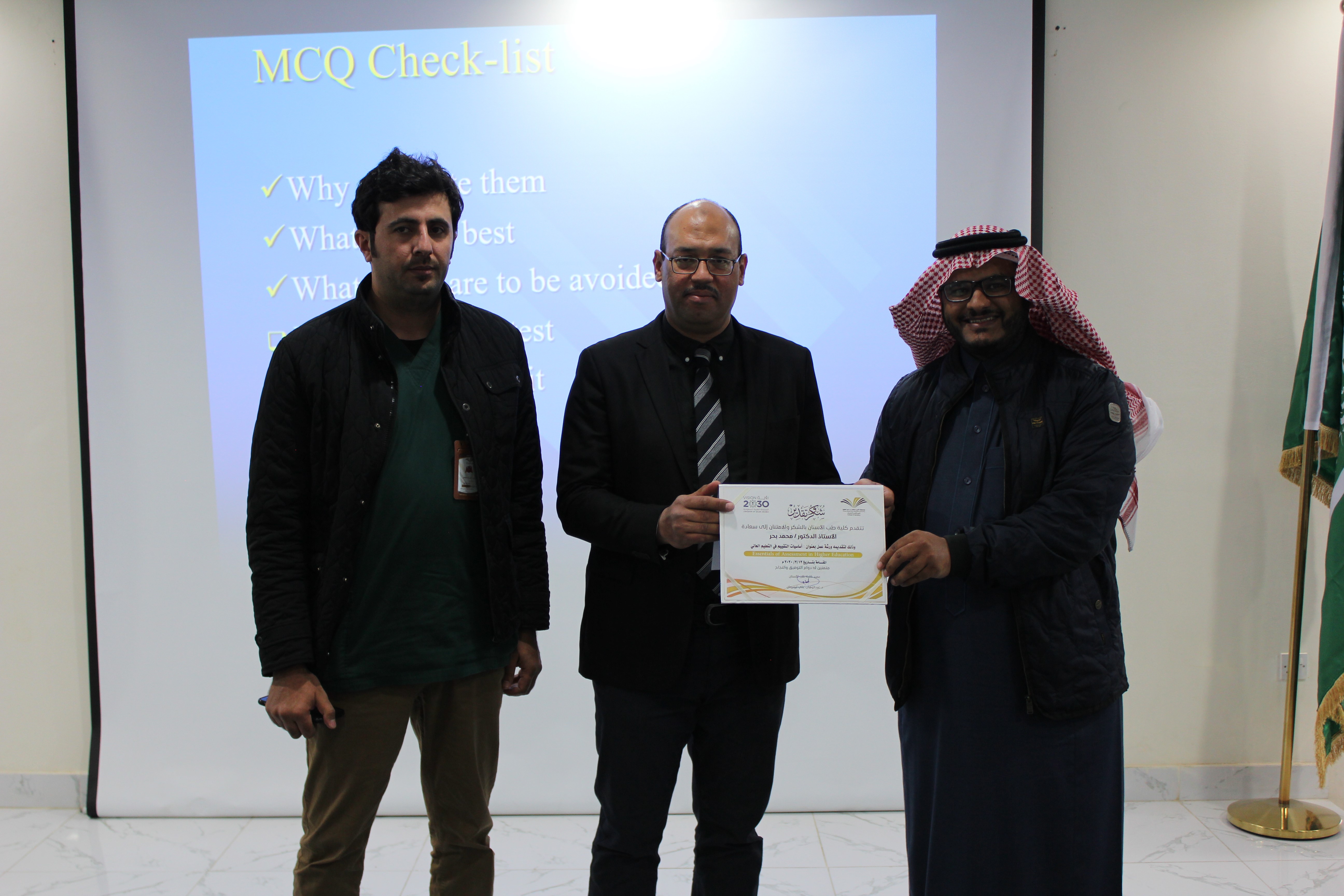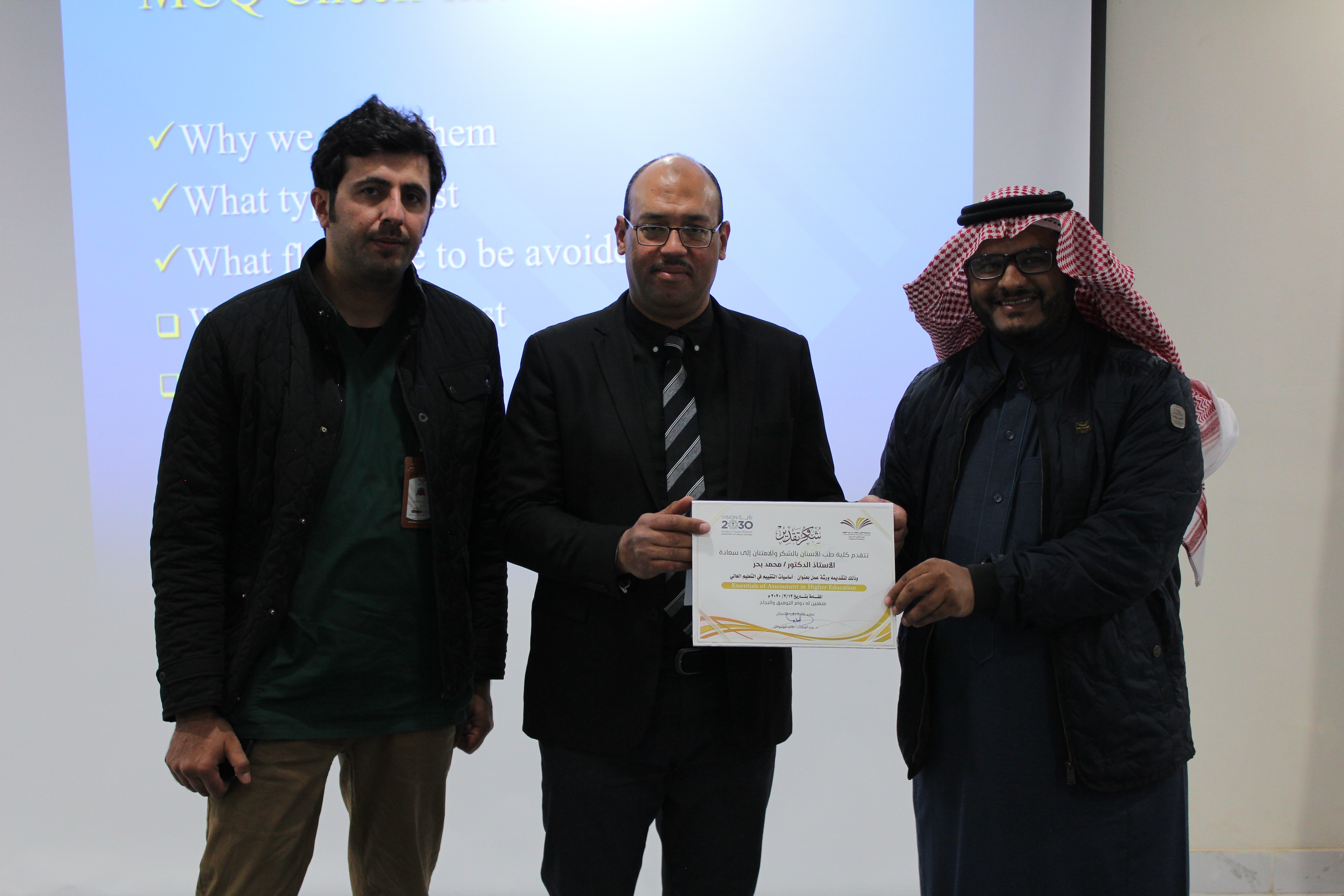 أقامت وحدة تطوير مهارات أعضاء هيئة التدريس والتعليم المستمر التابعة لوكالة الكلية للدراسات العليا والبحث العلمي والجودة ورشة عمل بعنوان: أساسيات التقييم في التعليم العالي ( Essentials of Assessment in Higher Education )قدمها سعادة د. محمد بحروذلك يوم الثلاثاء 18 /06 /1441 هـ الموافق 12 /02/ 2020م .