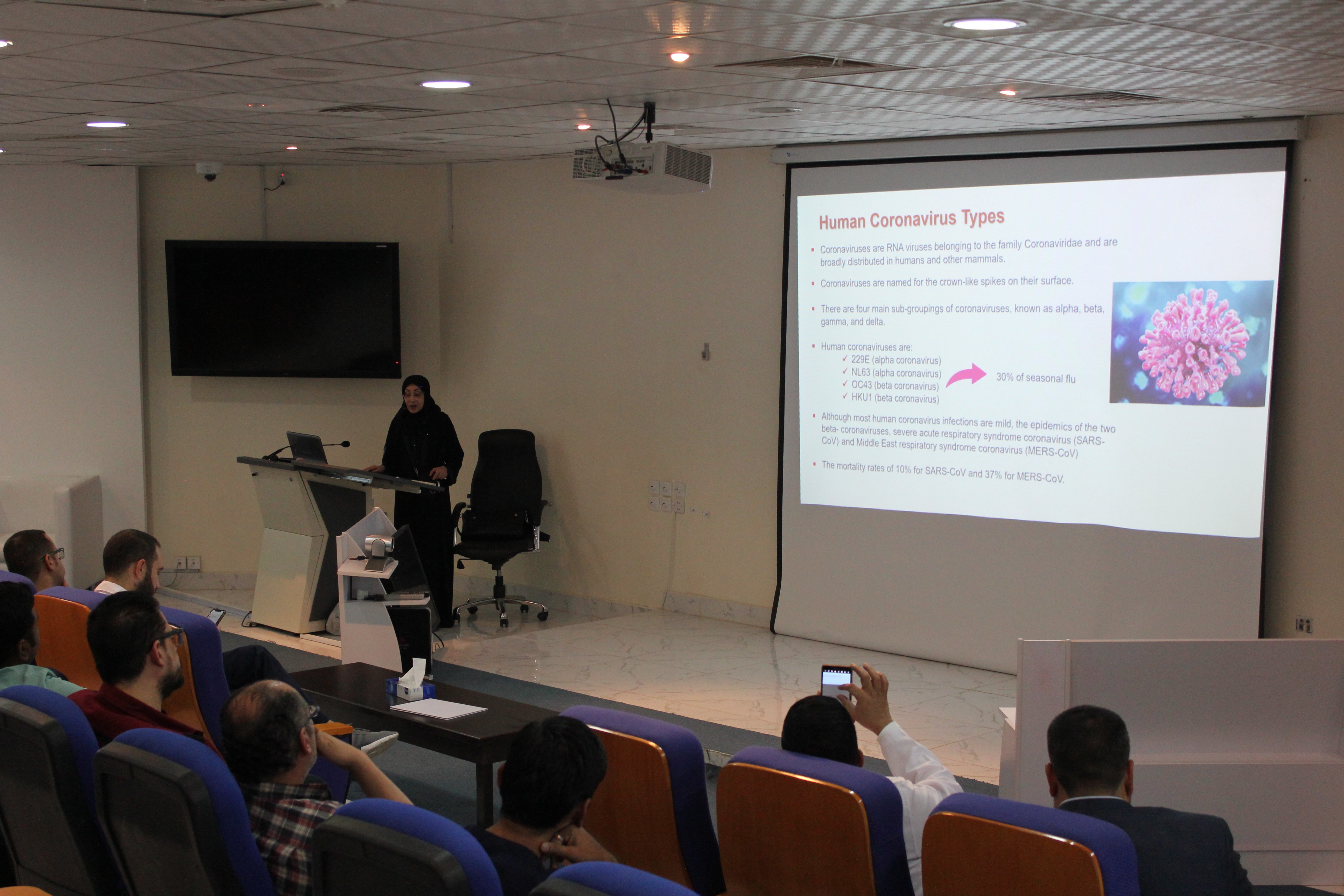 في إطار الأنشطة التوعوية لخطورة فيروس كورونا الجديد،اقامت وحدة العيادات التابعة لوكالة الشؤون العلاجية ورشة عملبعنوان:(طرق الوقاية من فيروس كورونا الجديد) قدمتها سعادة أ. الدكتوره : سناء كمال محرم وذلك يوم الثلاثاء الموافق ١٨ /٠٢ /٢٠٢٠ م.