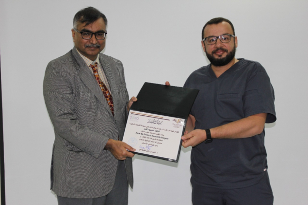 نظمت وحدة تدريب أطباء الامتياز بالتعاون مع وحدة الانشطة الطلابية محاضرة بعنوان  :  (How to present a research project )   قدمها سعادة الأستاذ الدكتور : شاهد محمود اكرم  وذلك يوم الاحد الموافق 06 / 02 / 2022 م في قاعة المؤتمرات بكلية طب الاسنان