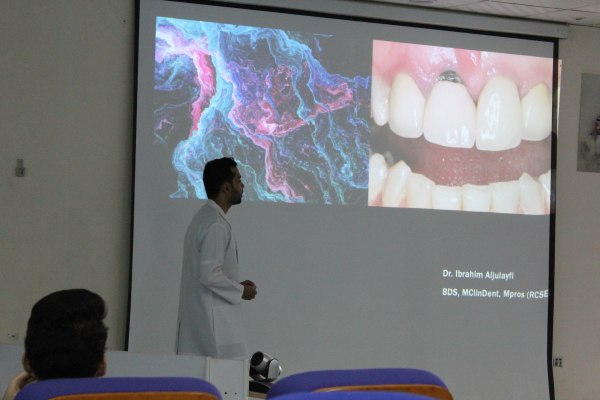 The Internship Doctors Training Unit organized a project with the University Activities Unit, a lecture entitled: (Failure in Fixed Prosthodontics) presented by His Excellency Dr. Ibrahim bin Saleh Al-Julaifi, on Sunday 11/13/2022, at the conferences at the college.